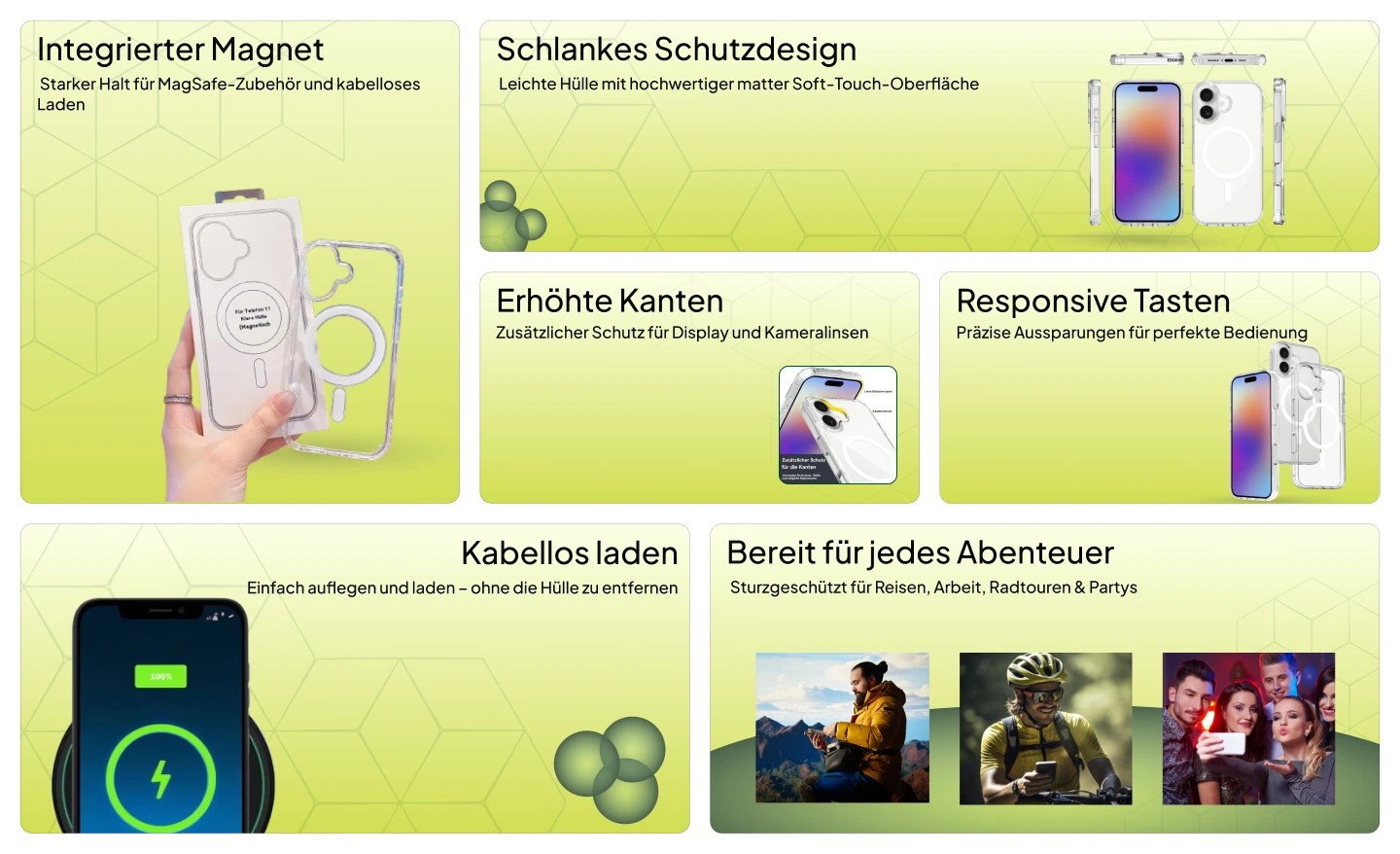 • Stoßfestes TPU-Material schützt vor Stürzen